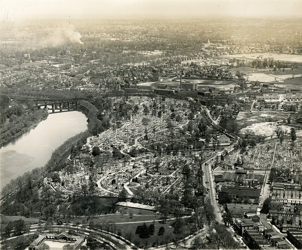 The expansion of Fairmount Park in the 1860’s prevented further growth at Laurel Hill East Cemetery and in 1869, founder John Jay Smith established Laurel Hill West Cemetery across the Schuylkill River in neighboring Lower Merion Township, Montgomery County. Both cemeteries are home to generations of Philadelphians from all stations of life including well-known names representing nearly every discipline — artists, architects, authors, doctors, musicians, politicians, scientists, war veterans, civic leaders, innovators in industry, and more. Names such as Rittenhouse, Strawbridge and Widener are certainly of local interest, but Breyer, Luden, Stetson, and Whitman are brands known across the country.